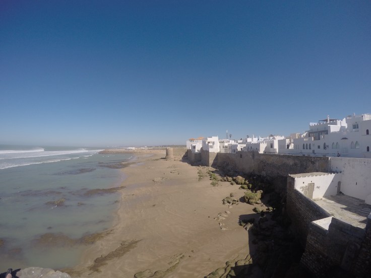 I returned to the hostel and met Kevin and Emily. Kevin is a freelancer photographer that does really good reportages in critical spots. He had recently been in Iraq and he was working on a reportage about inmigration in Morocco on its way to Europe. Emily is a British artist and was for 2 month already in Tanger. Really nice people, i think we connected very well. Together we visited Assylah, a super beautiful village in the Atlantic Coast. Kevin had a car, and I thought I deserved a rest day, also because I had some admin stuff to do, like getting a Sim Card and withdrawing money from the ATM. Later on we met Micaela from Argentina and had a tee watching the sunset in the Cafe Haffa. Ah, it was full of locals. I guess that made it even better. Avoiding tourist traps was now definitely a topic. I was out of Spain, so a bit out of my comfort zone.