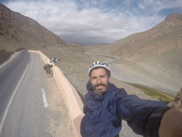 The day starts raining but, just when I am climbing the mountain pass in direction to Er-Rich, the rain stops and the sun comes out. I play some music while cycling and it is fantastic. Then, again, I have a 20 km downhill, so easy. From Midelt onwards the National road is not so crowded and the cycling is really enjoyable.