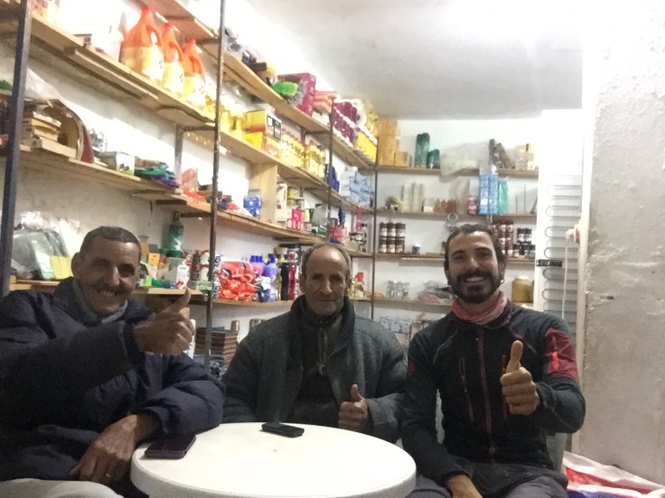 I stop in a small town to buy some food. However, the shop owner, Abdeslan, invites me for tee with his friend Omar. They are in their 60-s. We have lunch together and they tell me very interesting things about Islam and Amazigh culture. They are really old wise men, seems to me. They recommend me a cheap hotel in Er-Rich and that’s were I head, while the rain pops out again.