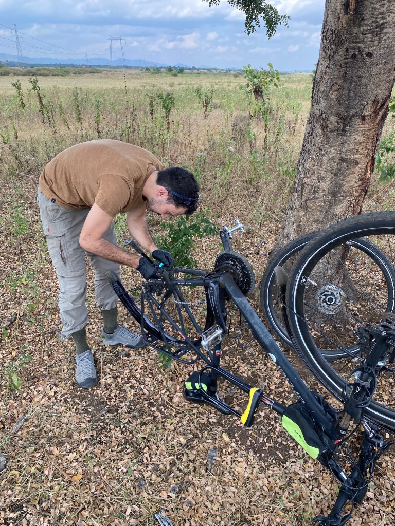 At this point, Javi gets the feeling that the trip might be over, as it’s not sure the derrailleur is broken too, and that would be impossible to find in Tanzania.