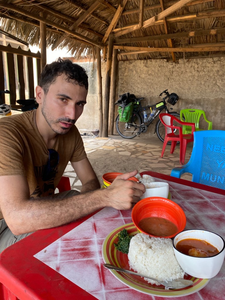 We arrive in Morogoro Bus station at 10:30 PM among a huge crowd of people trying to get us a taxi, carry our luggage or God knows what else. A friendly guy helpsus get a bit out of the crowd and throw away theannoying service providers, and we cycled towards the hotel that Gaspard looked while on the bus. It is beautiful and quite cheap (Mama Pierina, if you are ever around). On top of that, it has another chicken and fries place in front. After a lot of explanations, they offer us “Rollu” a Tanzanian-millet-based soup. it’s actually super tasty, and we will start asking for it from then on.