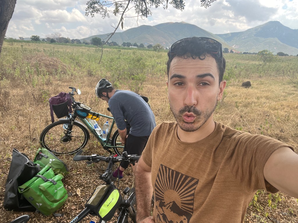 By 8:30 we are already cycling. We plan to reach the last inhabited place before entering Mikumi National Park, which has a national road crossing through it. Unfortunately, as soon as we join the national road we swope the motorcycles from the city for intense and truck-heavy traffic- Yes we start missing the tuktuks and motorcycles. After 10 km, we don’t find it fun anymore. We start brainstorming and decide to try to reach a “parallel” local road going through villages. But in the middle of the proccess, “crang cran crang!!”The bike of Javi is in trouble!