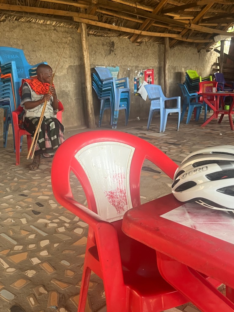 We do a stop for lunch at a place that seems to live from serving food to truck-drivers. We see some Masaai people there too, they look amazing with the earrings and their clothes. We eat an amazing rice with beans and meat for just 1 CHF per person. Javi is destroyed after the bike shock, so he gets a Pepsi as a luxury. We stock up water and we continue.
