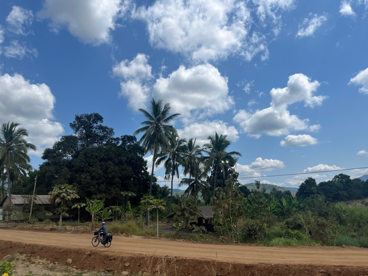 After having a top breakfast at Joseph’s Tan-Swiss, we start cycling and can’t be happier to leave the truck packed road, direction South. The police is making all trucks get weighted, which is generating a retention of multiple kms. Great moment to leave. Tschüss!!!