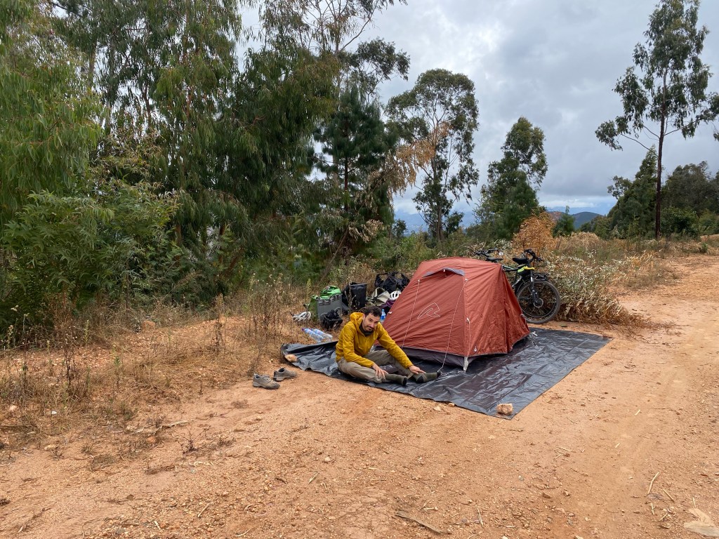 Some kids see our tent from the other side of the road, and start shouting at us. In a frankly pathetic way, we stay silent in the tent, looking through the edge of the tent if they are leaving. We are so tired that the last thing we want is spectators that we have to entertain while cooking. We are sorry, kids of Mat’ambo.