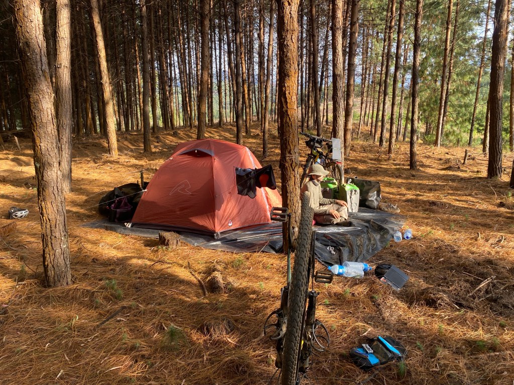 We find a wonderful, flat camping spot in one of the mentioned pine forests, and cook 500g of pasta with tomate soup that should serve both as lunch and dinner. We enjoy a relaxed afternoon, although Gasp concludes that the converter has gone defect. Thus, his dependency on his solar pannel just increased. Dusk is at 18:30, so we get ready for another set of 12 hours in the tent.