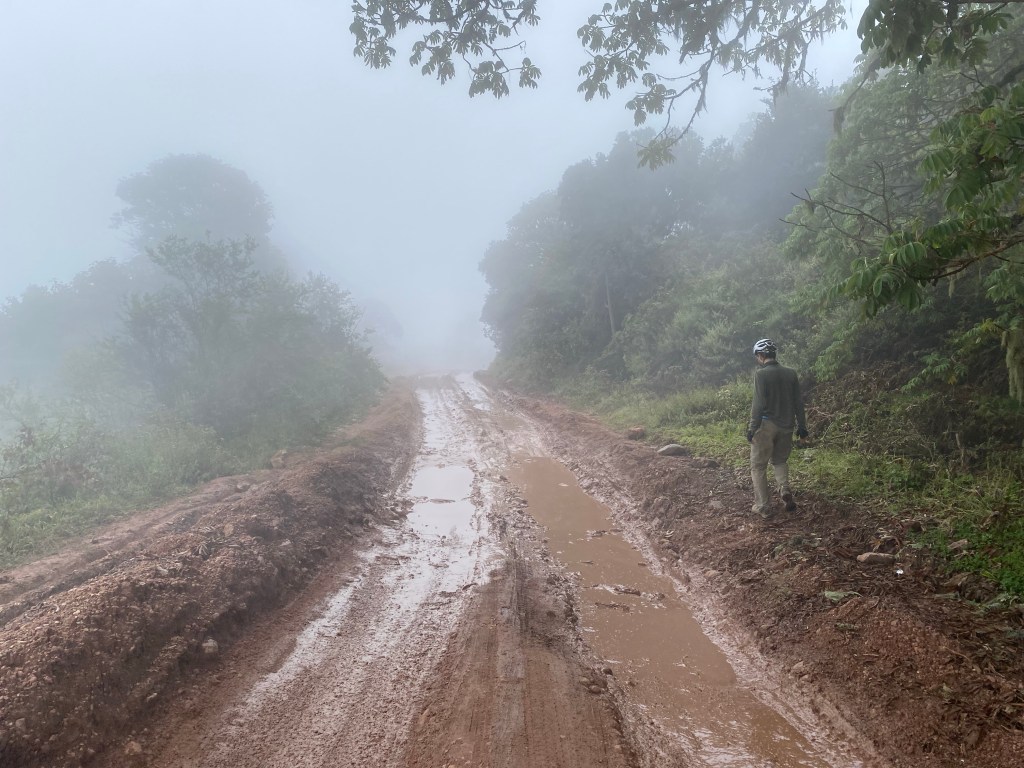 The road continues to be superb and we can’t understand why. We start seeing now and then some asian-looking people on the road, particularly close to material deposits. We look at each other and it’s difficult to say who is more confused to see the other there. We would learn later that the road we were on was built by Chinese companies and that these people are doing some inspections for potential maintenances.