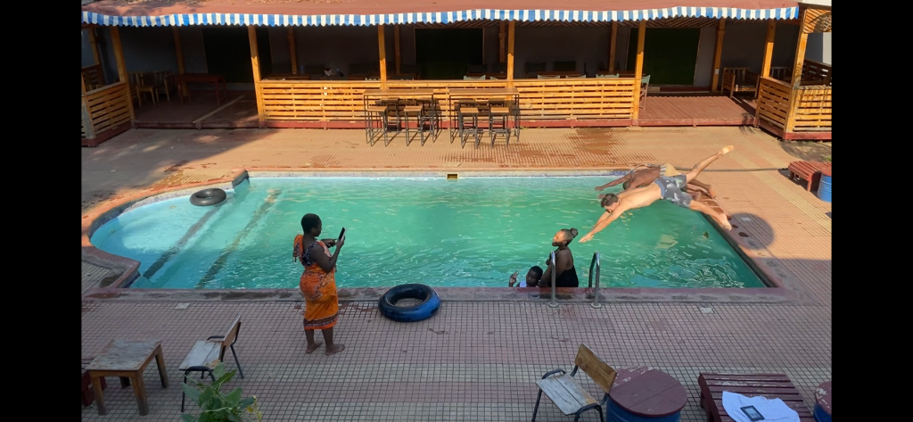 We go back to the hotel, and spend the afternoon chilling in the swimming pool. Some local girls are practicing swimming and we help them with some tips, despite we are far from pros. One of the facility guys challenges Javi to a swimming race. Javi accepts doubfully, since the guy is “jacked”. However, Javi’s depurated head-jumping technique gives him the edge for the win.