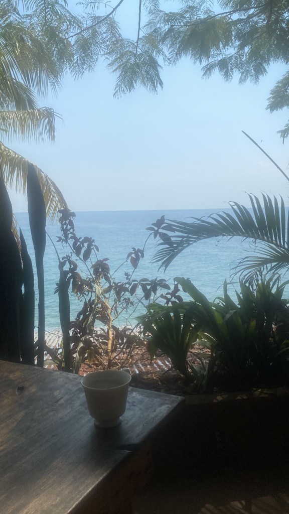 For lunch, we stroll a bit around town, where we find the best chicken we have eaten so far in the trip. We then pay a visit to Rasta Kelvin, as recommended by Luca from Macondo, to enjoy a beer. The view is amazing unfortunately he is also drying his underwear in front of the view.