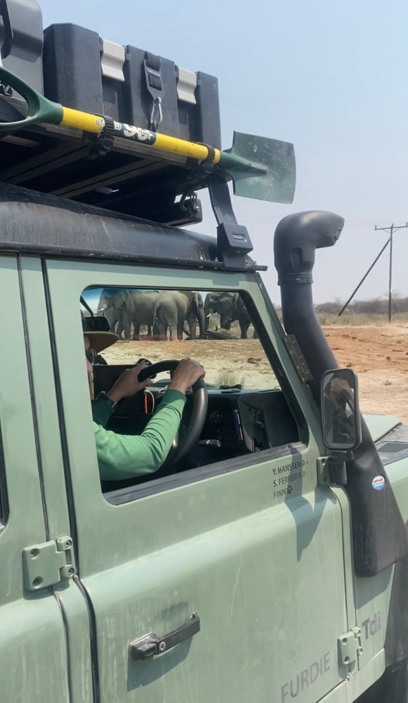 The road to Maun provides little distraction, so we stick to our podcasts and audiobooks. Gaspard listens to geopolitics, Javi to neuroscience (Huberman Lab). From time to time we see a warning “potholes ahead” which basically means the tarmac disappear to leave a dirt road.